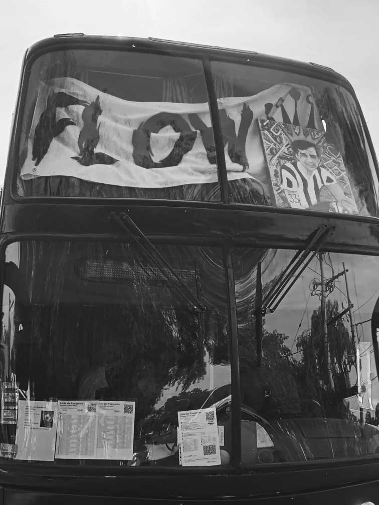 Siento que estoy arriba de este bondi desde siempre, desde que fui a probarme a Gimnasia en séptimo grado. En esa época los colectivos iban hasta San José, Gutiérrez, Luján, Las Heras y lugares así; esos fueron los primeros círculos, después fueron más allá: Alvear, San Juan, La Punta y Río IV; (se me confunden distritos, departamentos, provincias; es un camino difuso y nunca se sabe bien donde estás). Con el tiempo llegaron hasta Venado Tuerto, Cipolletti, San Nicolás, Puerto Madryn y Villa Obrera; un mapa rizomático que también pasó por Lincoln, Arroyo Seco, Río Gallegos, Palpalá, Aconquija, Chubut y Córdoba; Villa Ramallo, Santiago del Estero, Caseros, Tucumán y Alberdi… Puedo contar algo de cada uno de esos lugares, pero basta solo con nombrarlos para que quienes estuvieron ahí sepan perfectamente lo que significa este viaje, que tampoco es este viaje, sino todos.