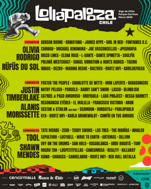 Para más detalles, visita www.lollapaloozacl.com o sigue las redes sociales del festival.